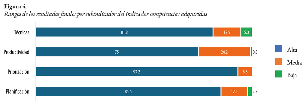 Rangos de los resultados finales por subindicador del indicador competencias adquiridas